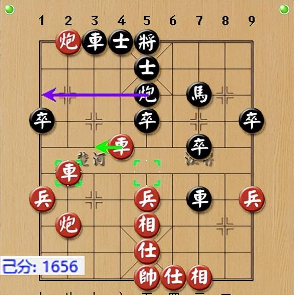 此式,紅方揚開仕相,老帥坐肋道,炮壓黑馬,平車連捉黑馬炮之機,必喫黑一子,87手奪子強取獲勝。