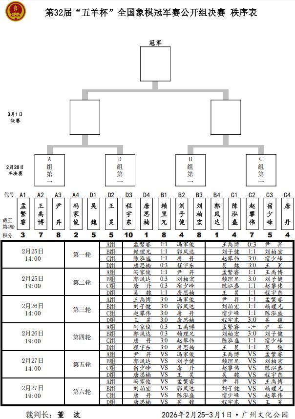 賽會27日下午兩點,晚上七點,進行本次大戰公開組第5、6輪,小組賽最後兩輪的大決鬥,以及元老組第三輪,誰能強勢突圍,火力晉級,直衝三十大獎決戰而去,象棋王子抖音號持續直播。