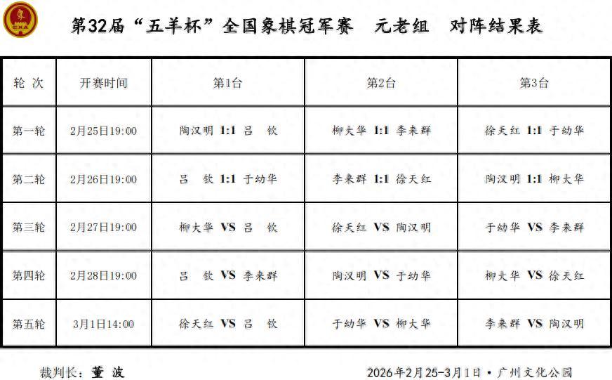 大賽27日下午兩點,晚上七點,進行本次五羊杯公開組小組賽第5、6輪,最後兩輪的大決戰,以及元老組第三輪的比賽,誰能一舉搶分,強勢晉級,力取出線,衝向110萬鉅獎,及三十萬冠軍大獎,象棋王子也將繼續進行全程的直播與報道(抖音:象棋王子),敬請關注、支持、守護,謝謝!