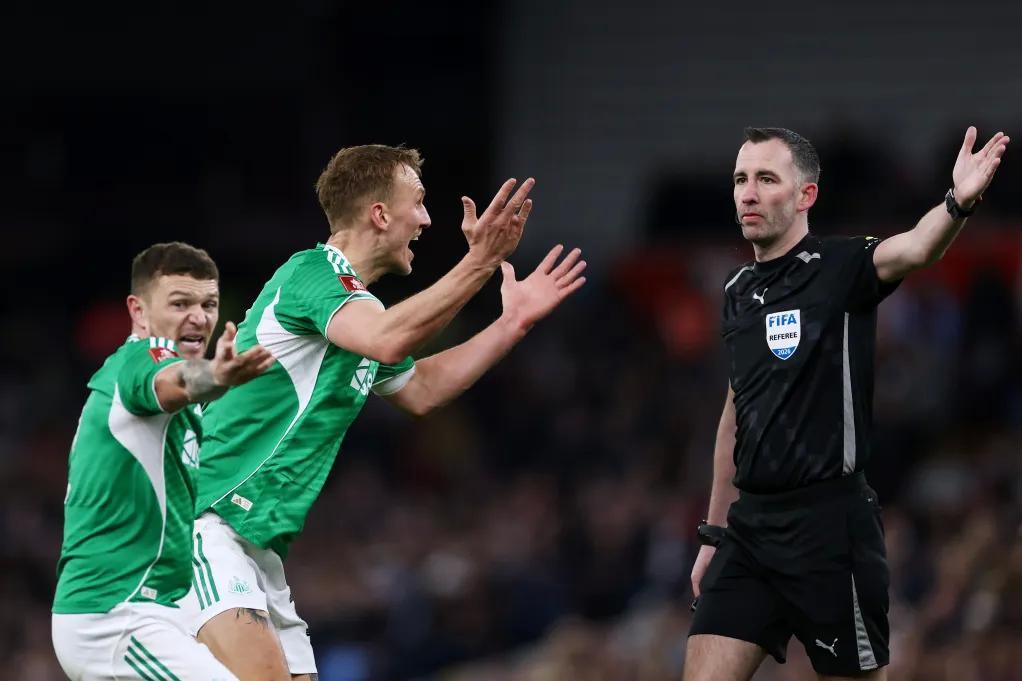 紐卡斯爾主帥埃迪-豪在談及克里斯-卡瓦納在那場足總盃比賽中的執法表現時,依然難掩不滿:“整場比賽下來,感覺每一個判罰都在針對我們。比賽節奏很快,我相信裁判和官員們的判罰出發點是誠實的,但他們確實多次對我們做出了錯誤的判罰。我們的球員很好地控制住了自己的情緒。”
