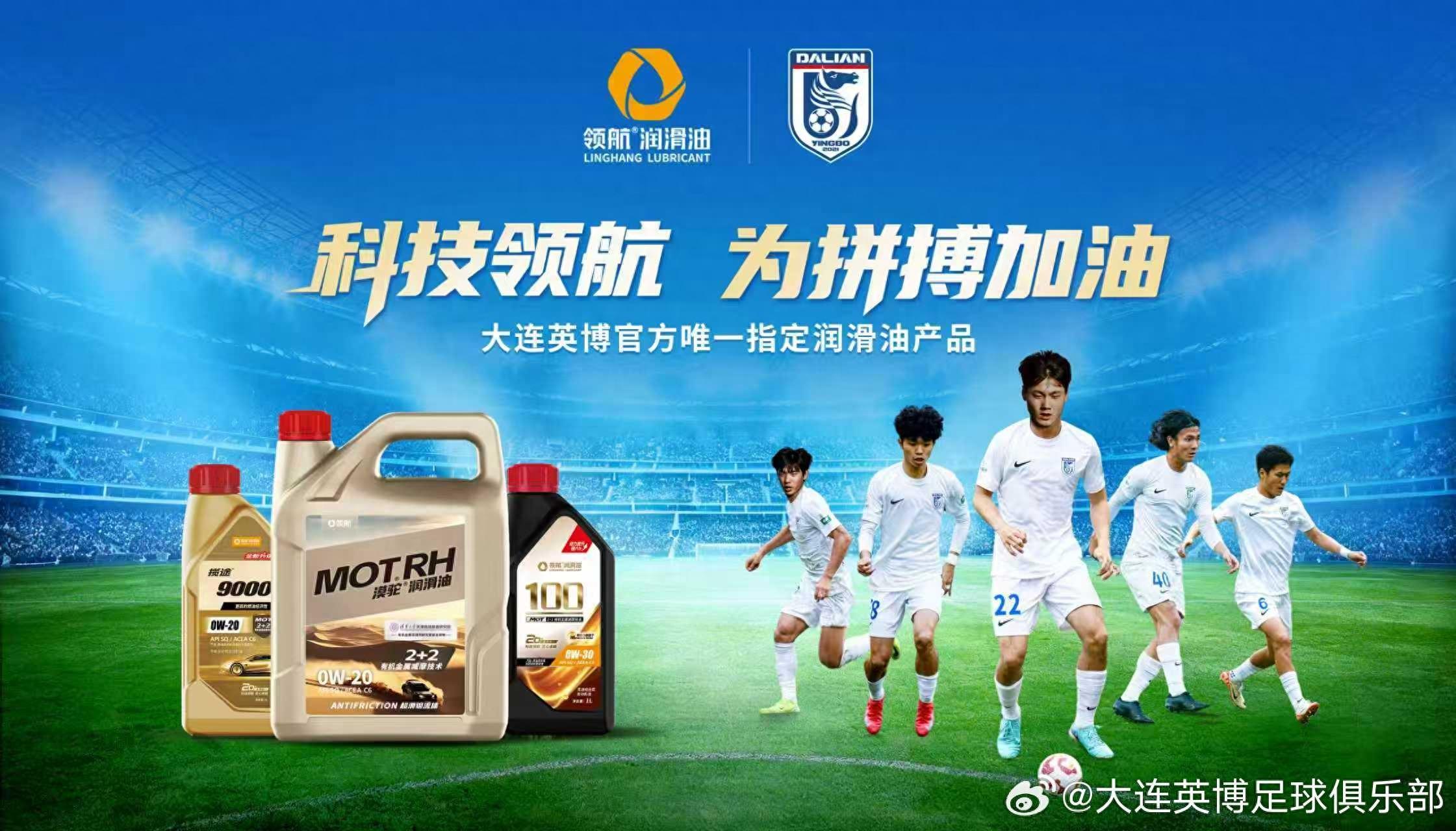 北京時間2月27日,大連英博官方公佈了全新合作伙伴,領航潤滑油成爲俱樂部官方唯一指定潤滑油產品。