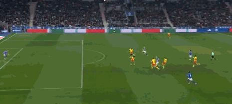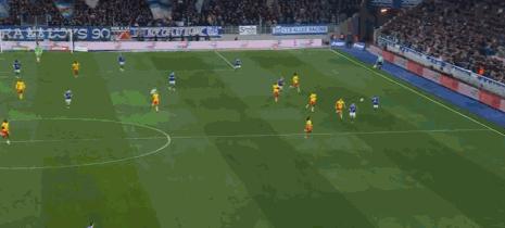 第11分鐘,恩西索射門,被朗斯門將用腿擋出