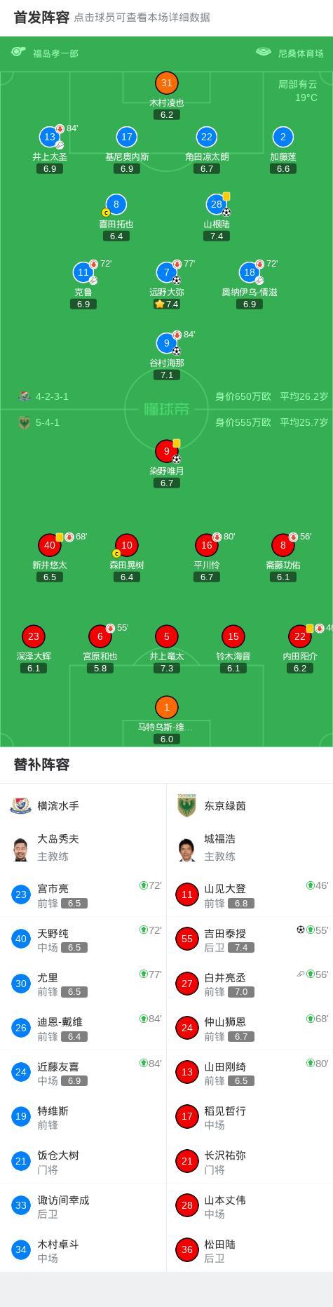 橫濱水手3-2東京綠茵,谷村海那、山根陸、遠野大彌破門