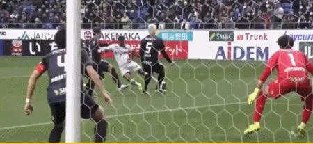 第64分鐘,北川航也過掉防守後射門,三浦弦太門線前將球解圍