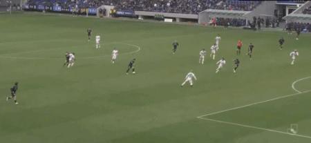 第83分鐘,卡皮沙巴助攻,北川航也剷射破門,清水心跳1-2