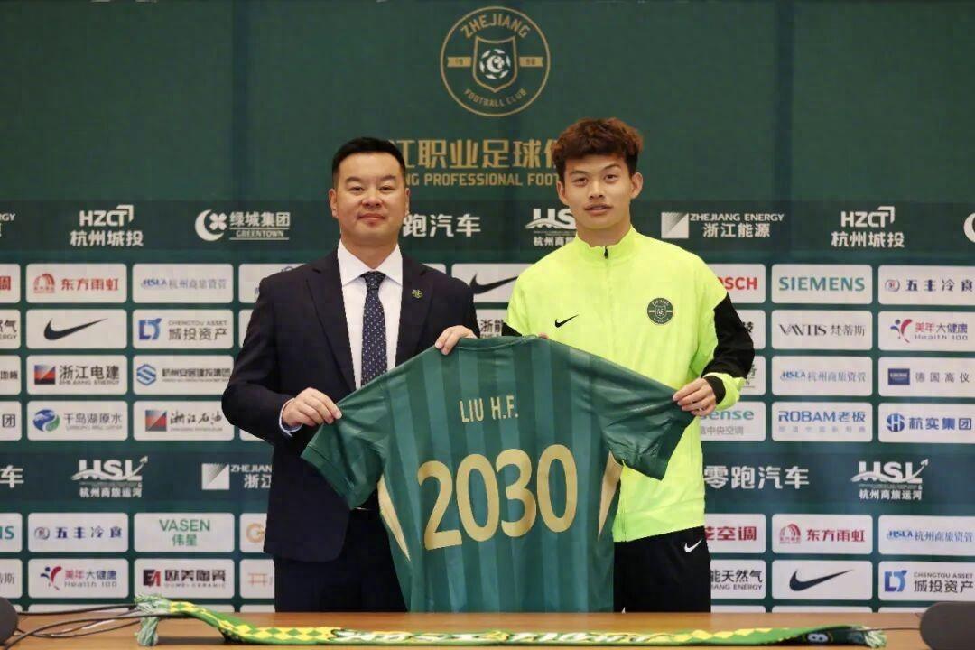 近日,浙江職業足球俱樂部與球員劉浩帆完成續約,新合同延續至2030年。