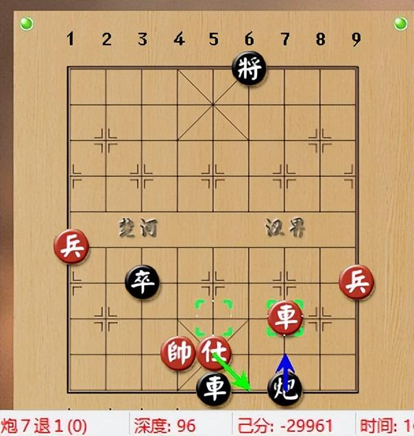 黑要解殺,只能棄炮,紅連番攻打,奪炮下來,打入車雙炮雙兵單缺相對車炮雙卒單士象79手取勝。
