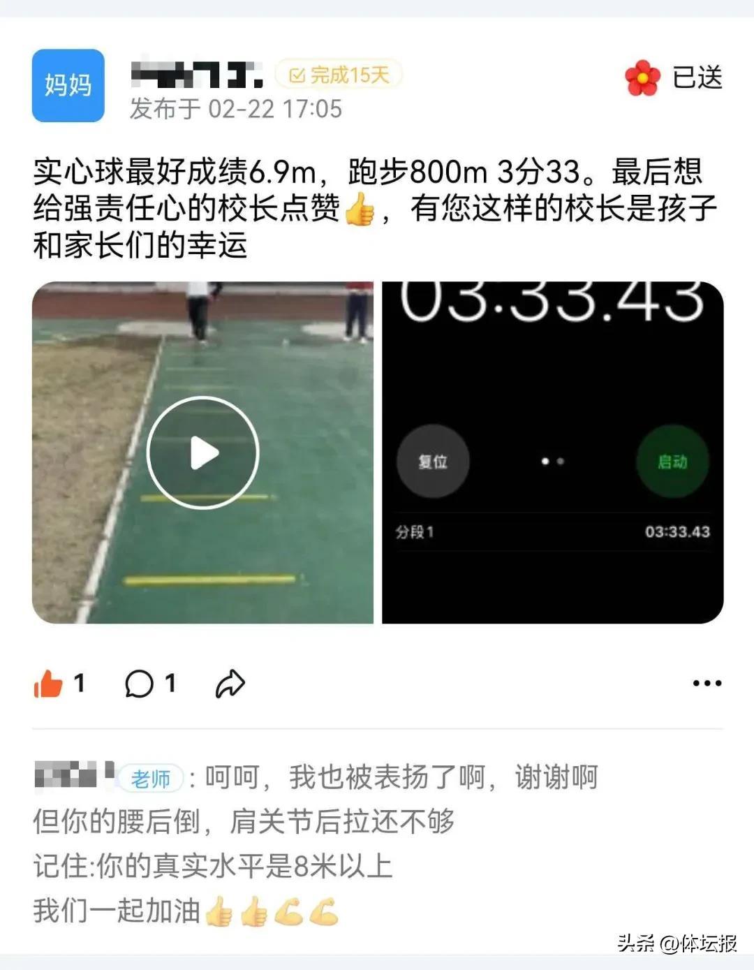 老師的用心,家長看在眼裏。許睿洋媽媽上傳孩子的運動成績後,特意爲校長點贊。她告訴記者:“這份認可發自內心,我很欣慰學校如此重視孩子的身心健康。每天的打卡和老師的點評,讓孩子的進步清晰可見。”經過一個寒假,女兒從需要督促變爲主動鍛鍊,養成運動習慣,充滿活力。許睿洋媽媽認爲,孩子健康的體魄和運動習慣,比一時的成績更有長遠價值。