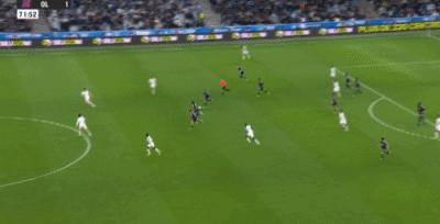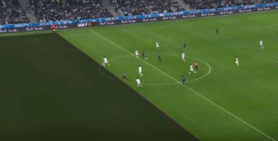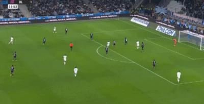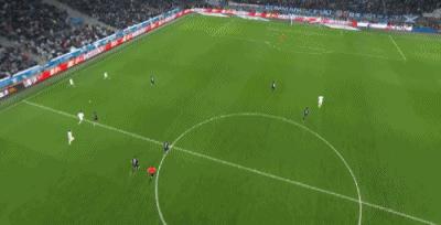第90+1分鐘,奧巴梅揚門前剷射破門,馬賽3-2里昂