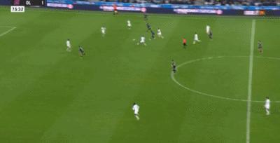 第76分鐘,安貝爾反擊低射遠角破門,馬賽1-2里昂