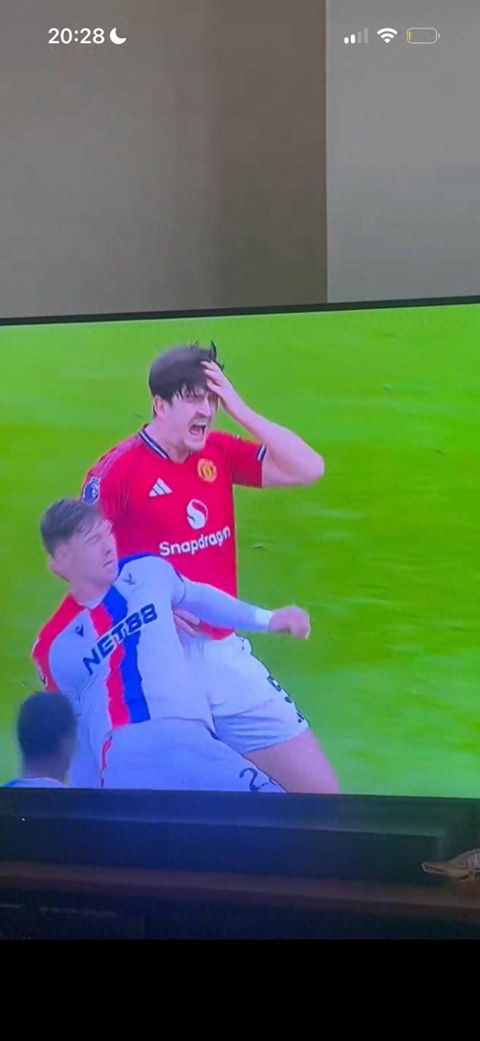 曼聯2-1逆轉水晶宮一役,馬奎爾在與水晶宮前鋒尤爾根-拉森的對抗中上演爭議一幕。