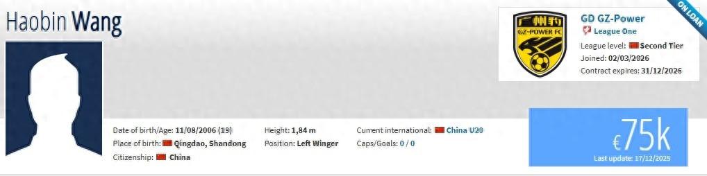 北京時間3月2日,德轉更新,山東泰山19歲前鋒王昊斌租借加盟廣東廣州豹。