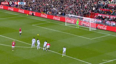 比賽第56分鐘,拉克魯瓦拉拽庫尼亞送紅點,B費點射命中,曼聯1-1扳平水晶宮。