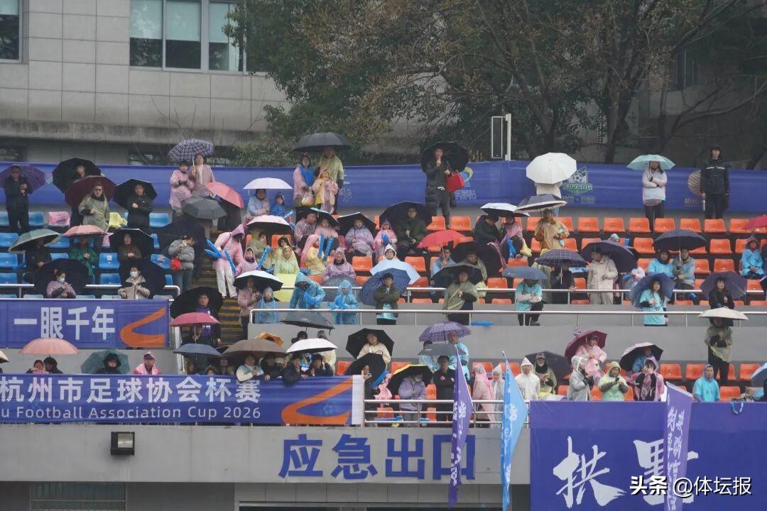 賽場之上球員奮勇拼殺,賽場之下球迷的支持同樣動人。儘管滂沱大雨打溼了看臺,卻絲毫擋不住拱墅球迷的熱情,大家撐着雨傘、穿着雨衣,始終堅守看臺,用響亮的吶喊爲球隊助威,成爲綠茵場上最溫暖的後盾。