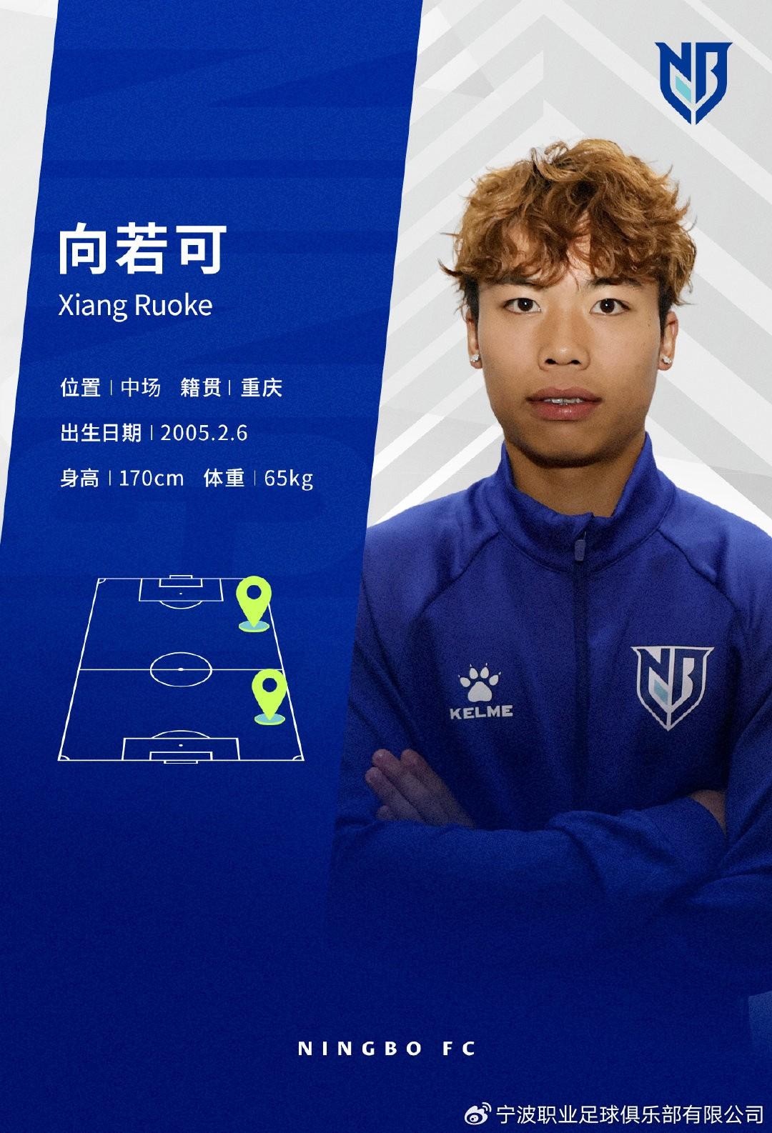 經與球員本人協商一致,即日起,球員向若可正式加盟寧波職業足球俱樂部。