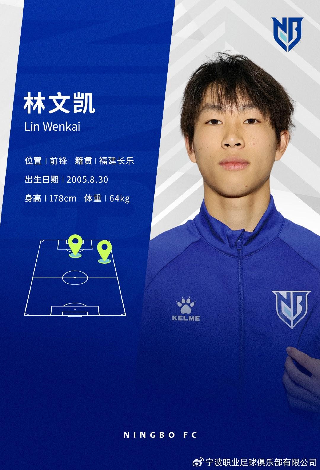 經與球員本人協商一致,即日起,球員林文凱正式加盟寧波職業足球俱樂部。