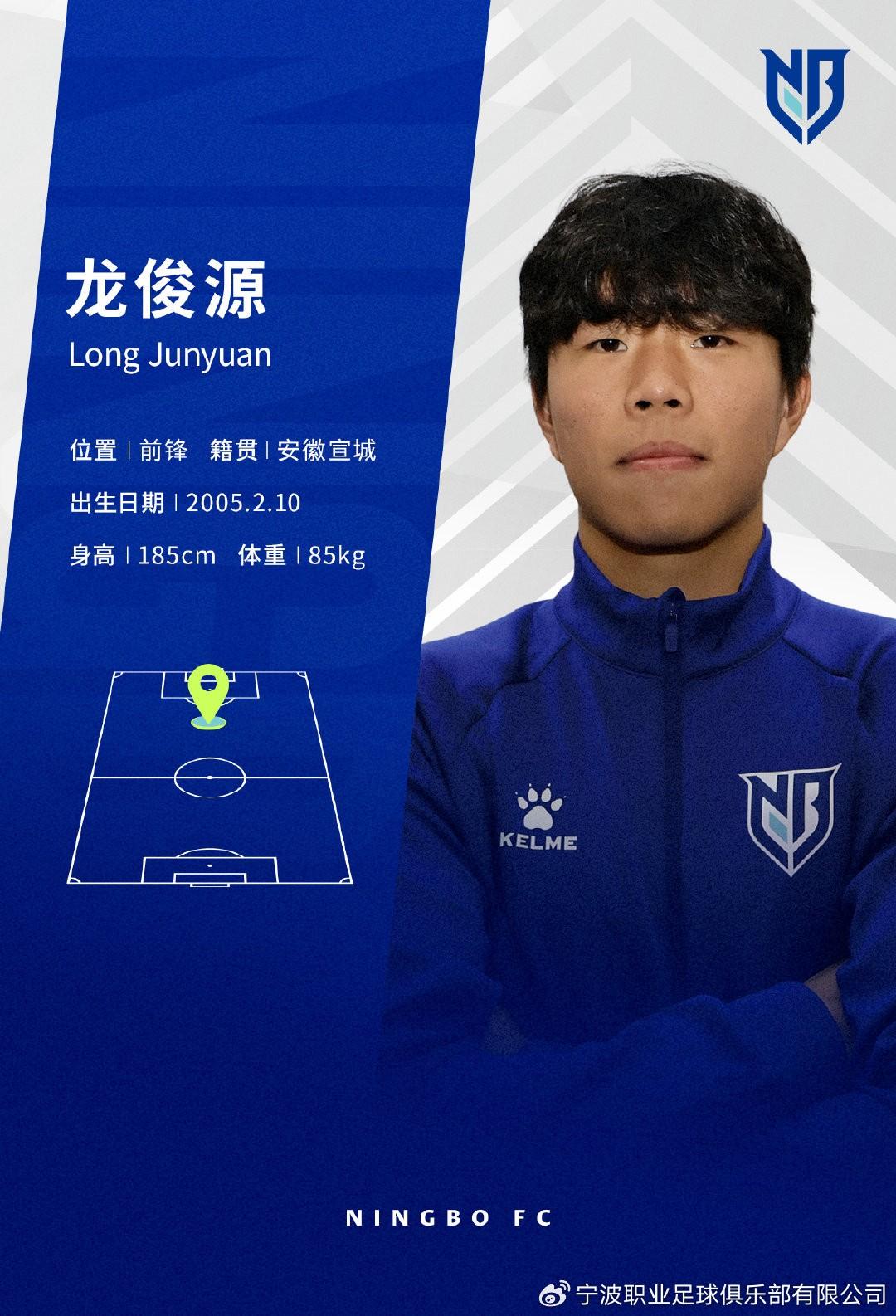 經與球員本人協商一致,即日起,球員龍俊源正式加盟寧波職業足球俱樂部。