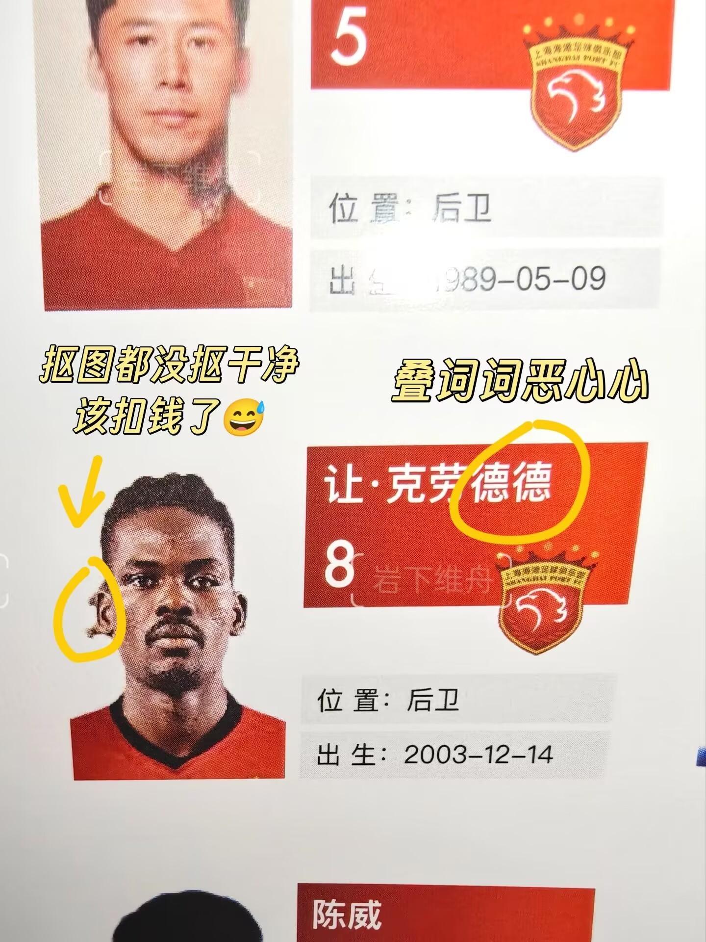 最離譜的是海港新援讓-克勞德,他的圖片不僅摳圖沒有摳乾淨,名字還被改成了克勞德德。
