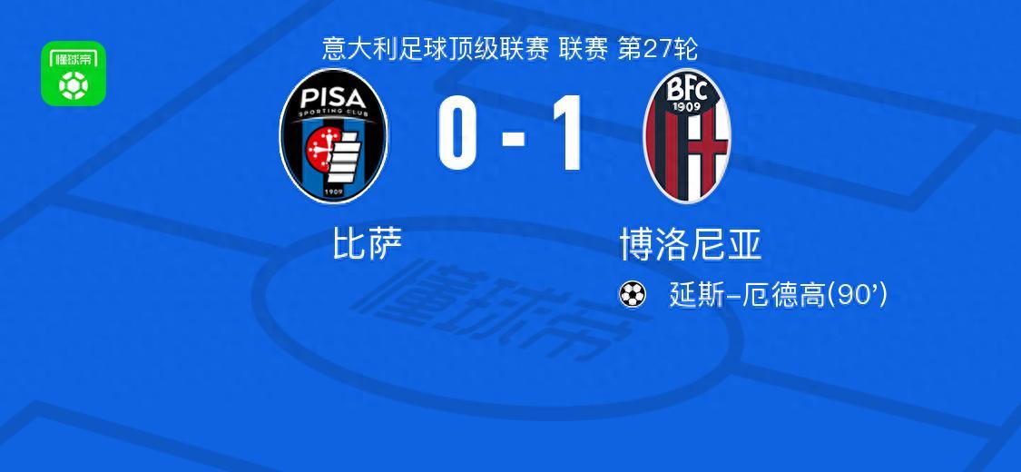 北京時間3月3日意大利足球頂級聯賽 聯賽 第27輪,比薩主場對陣博洛尼亞。博洛尼亞 延斯-厄德高破門。最終比分比薩 0-1 博洛尼亞。精彩瞬間第90分鐘,博洛尼亞球員弗羅伊勒助攻 延斯-厄德高打入一球。球隊陣容 技術統計