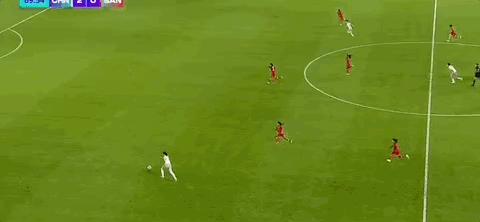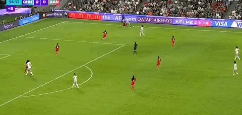 第90+3分鐘,中國女足邊路傳中,孟加拉後衛解圍不遠唐佳麗頭球攻門被門將沒收