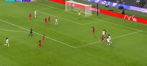 第45+6分鐘,王霜嘗試一腳任意球直接攻門,角度太正被門將沒收