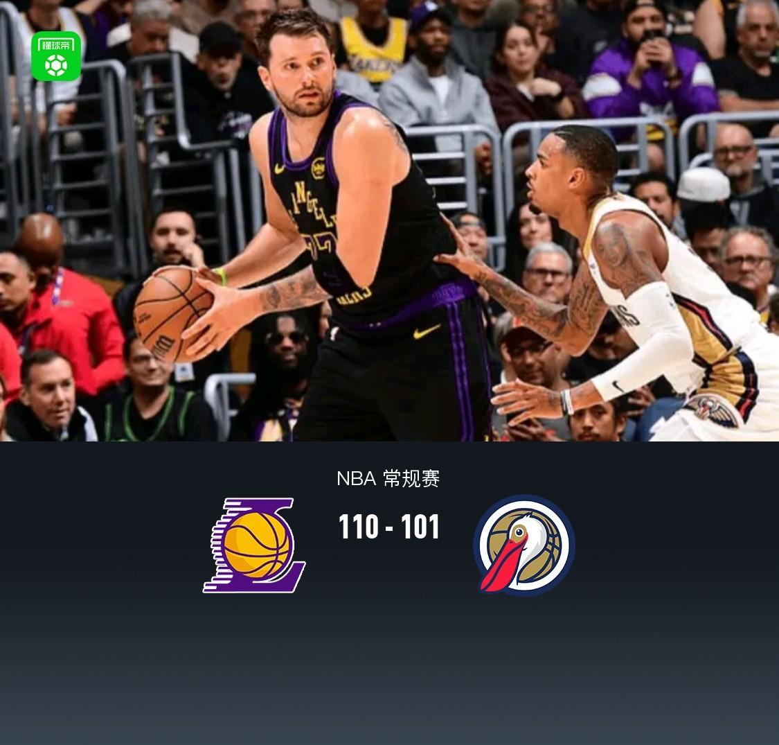 湖人110-101鵜鶘,東契奇27+10+7,詹姆斯21+7+7,錫安24分