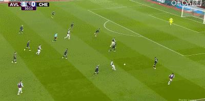 第2分鐘,貝利助攻,道格拉斯-路易斯門前巧射破門,維拉1-0切爾西