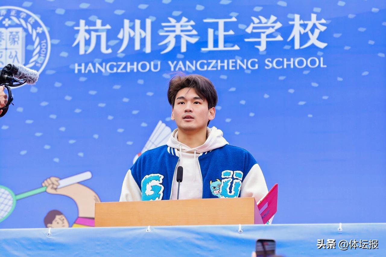 3月4日上午,杭州養正學校舉行“新年微馬暨冠軍開學健康第一課”。游泳奧運冠軍徐嘉餘、亞運冠軍李朱濠走進校園,與全校師生共迎新學期。