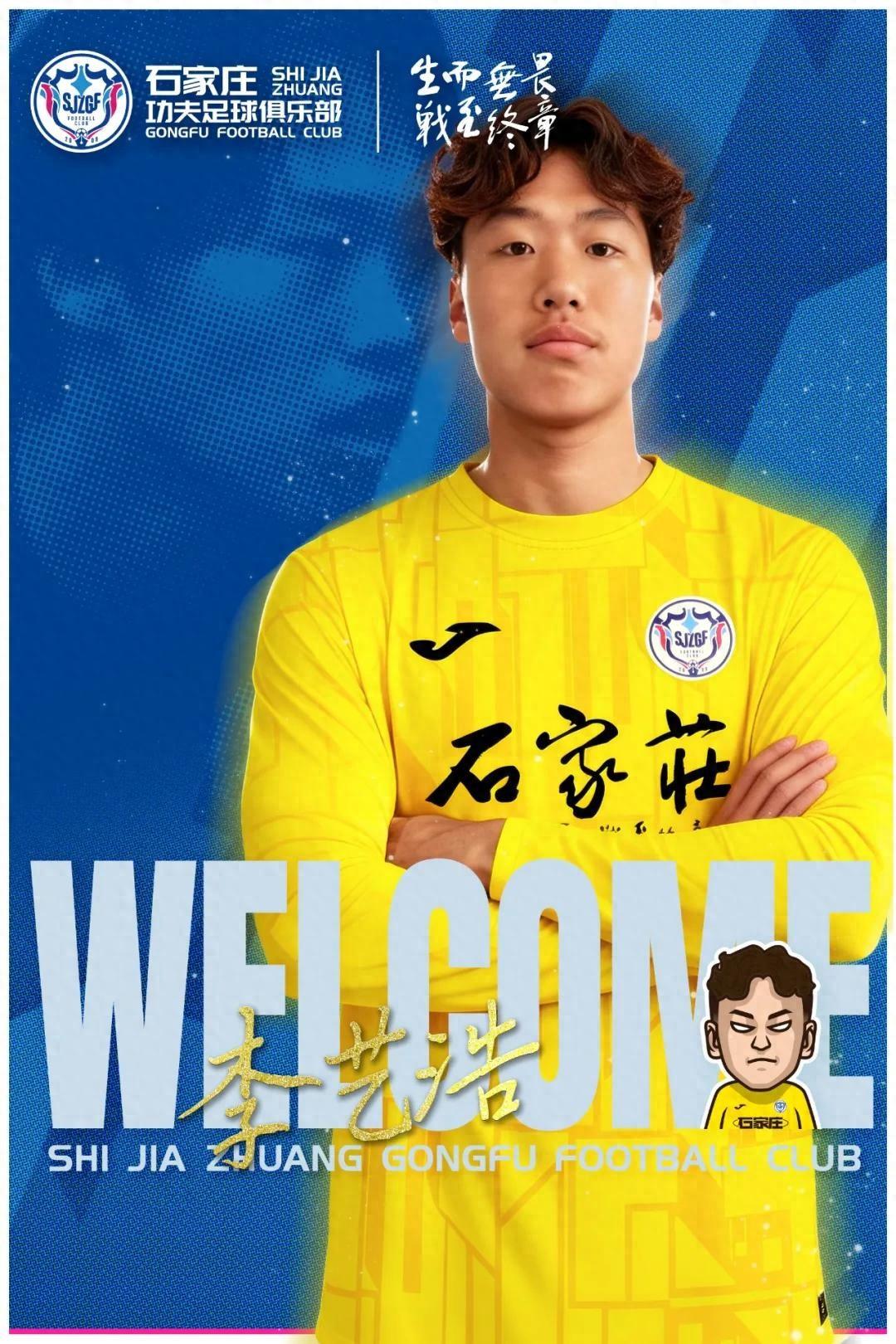 歡迎李藝浩加入石家莊功夫大家庭!期待他迅速融入球隊戰術體系,在門前展現穩定的表現,與我們一同爲城市榮譽而戰!