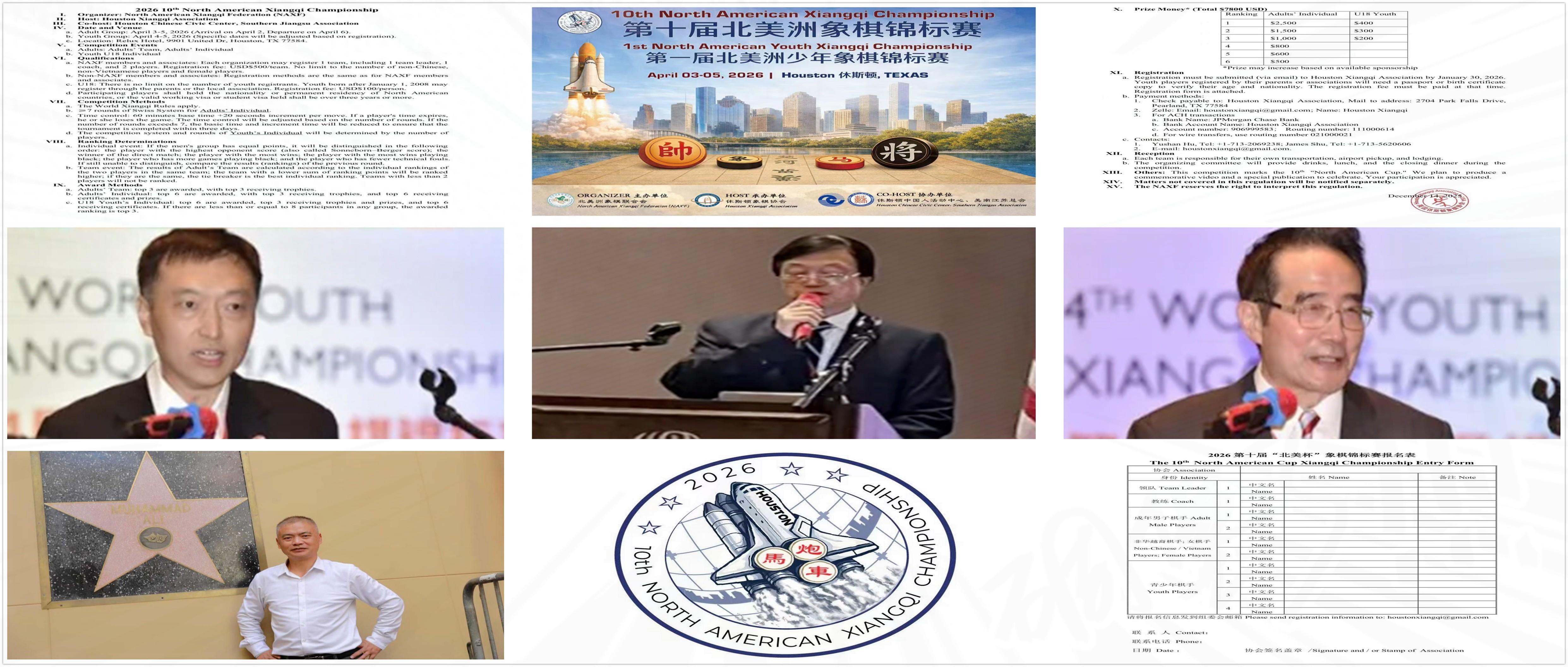 預祝2026年第十屆北美洲象棋錦標賽暨第一屆北美洲少年象棋錦標賽在美國休斯頓取得圓滿成功,續寫輝煌,更創高峯,十全十美,大放光芒,祝福美國象棋和北美象棋芝麻開花節節高,金榜題名,更上一層樓!