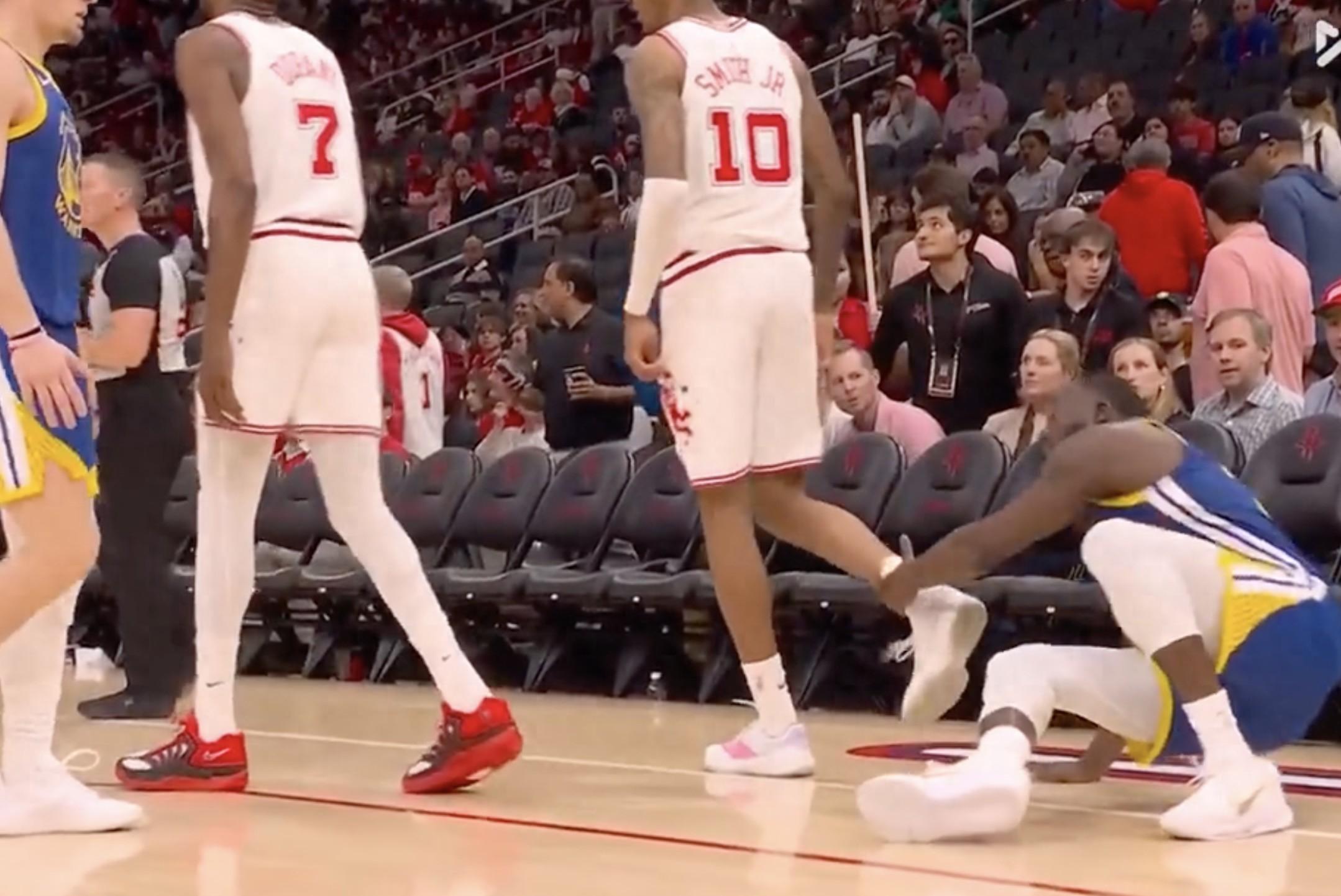 比賽進行到第三節時,追夢格林被小賈巴里-史密斯撞翻在地。起身過程中,他故意拉拽了對方的腳踝,裁判通過回看錄像後,吹罰了技術犯規。