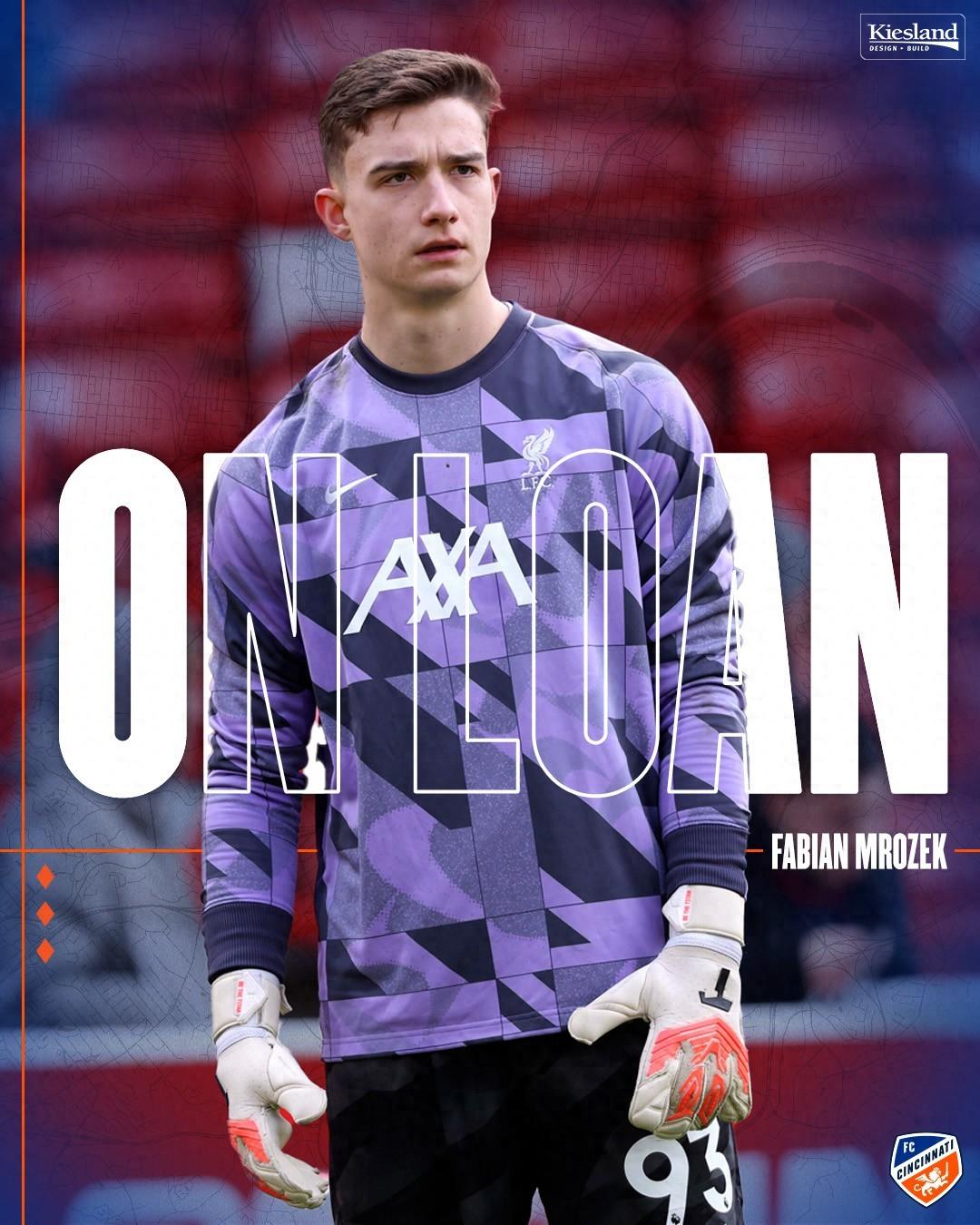 官方消息,辛辛那提足球俱樂部今日宣佈,從英超利物浦足球俱樂部租借簽下波蘭門將法比安-姆羅澤克,交易將在其獲得P-1簽證後正式生效。