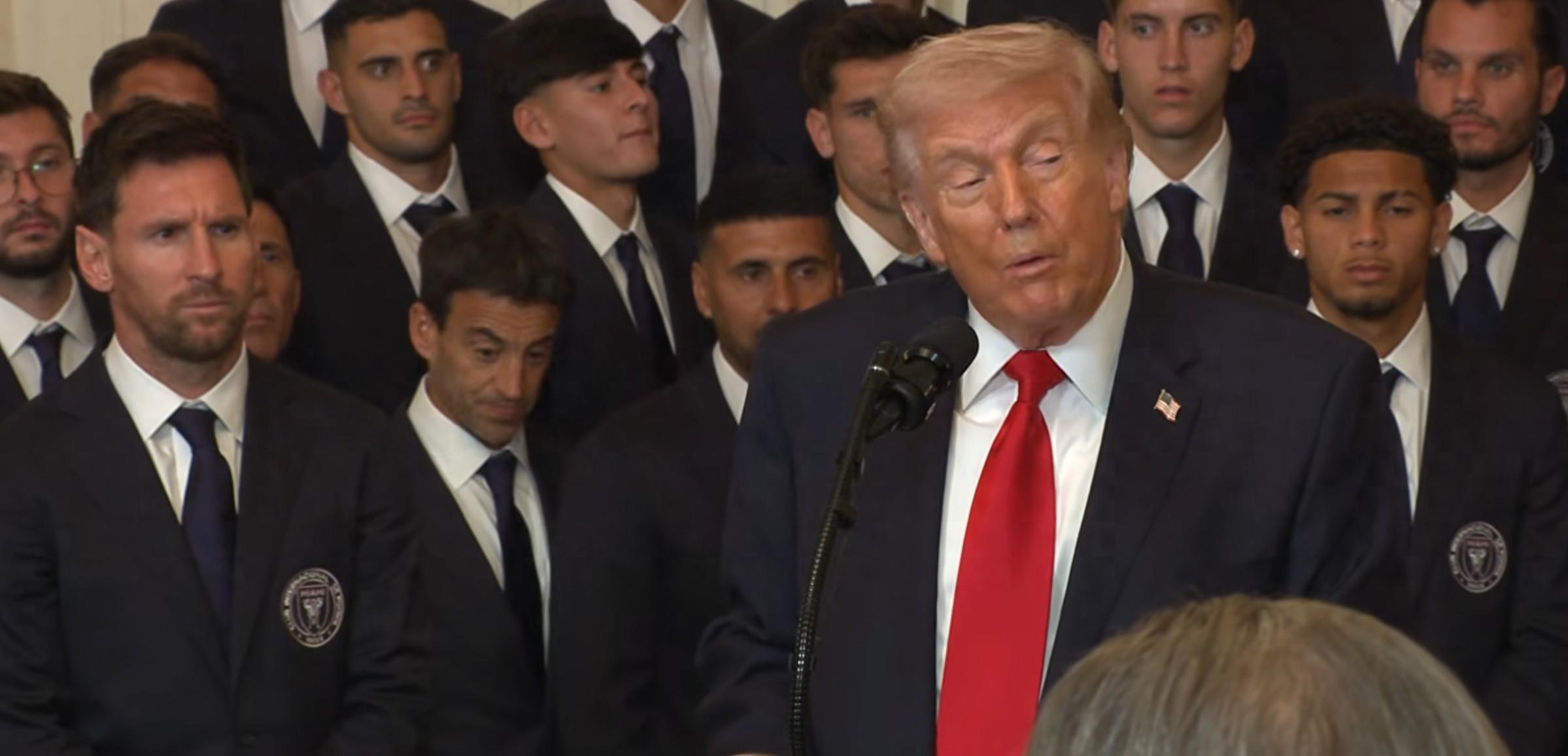 當地時間3月5日,邁阿密國際隊全隊受邀前往白宮,慶祝俱樂部歷史上首次奪得美職聯冠軍。球隊隊長梅西在活動中向美國總統特朗普贈送了一份禮物。特朗普在演講中表示,梅西和C羅都是偉大的球員。此外,特朗普表示自己曾現場看過貝利代表紐約宇宙的比賽,他個人認爲梅西可能已經強過貝利。
