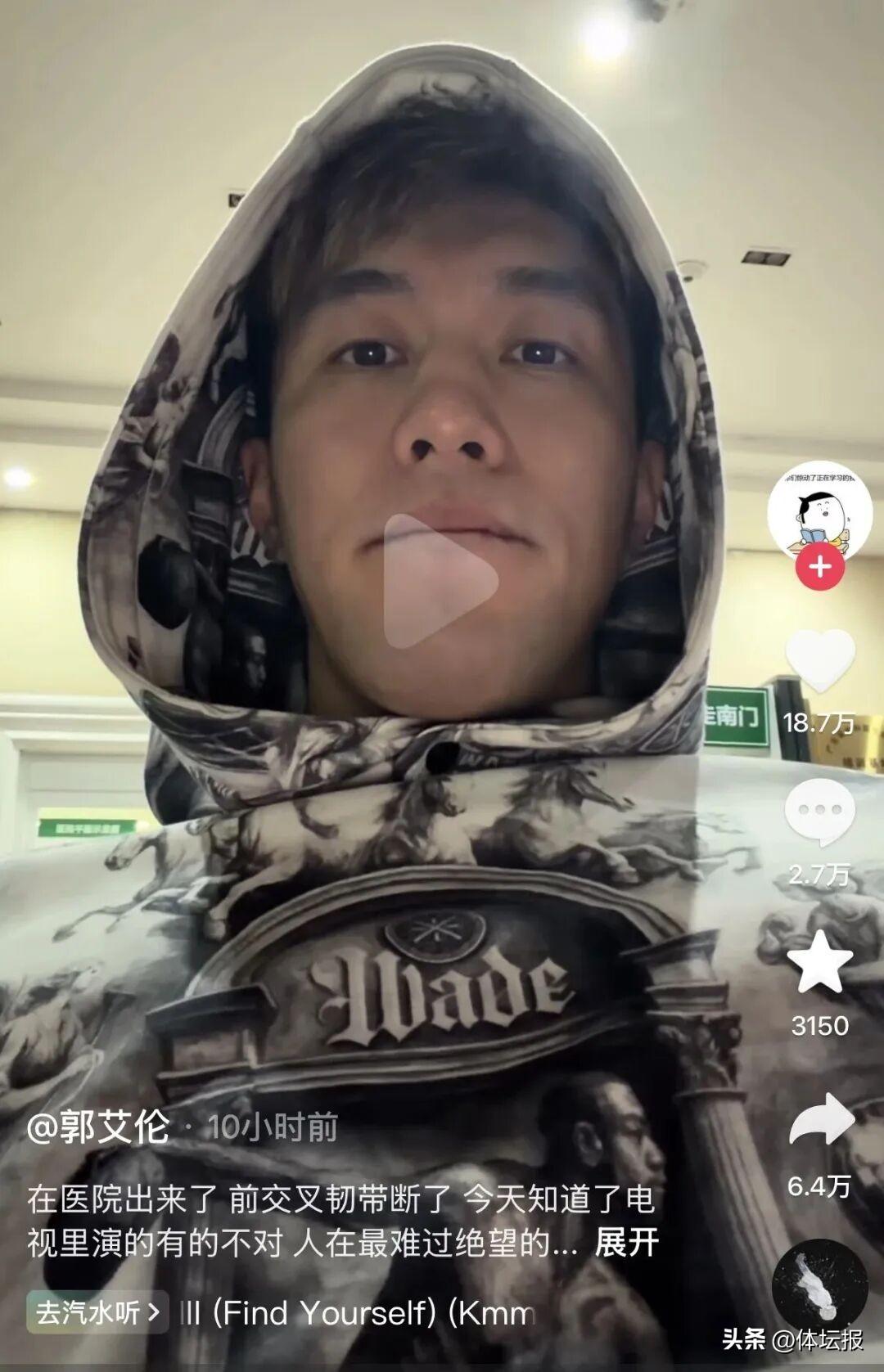 郭艾倫當晚也在個人社媒回應傷情:“在(從)醫院出來了,前交叉韌帶斷了,今天知道了電視裏演的有的不對,人在最難過絕望的時候不是一直哭,哭完是會笑的。”
