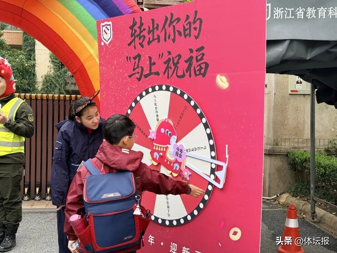 3月4日清晨,伴着歡聲笑語,浙江省教育科學研究院附屬實驗學校的校門口格外熱鬧。一座滿載祝福的幸運大轉盤矗立在門前,迎接返校學子。