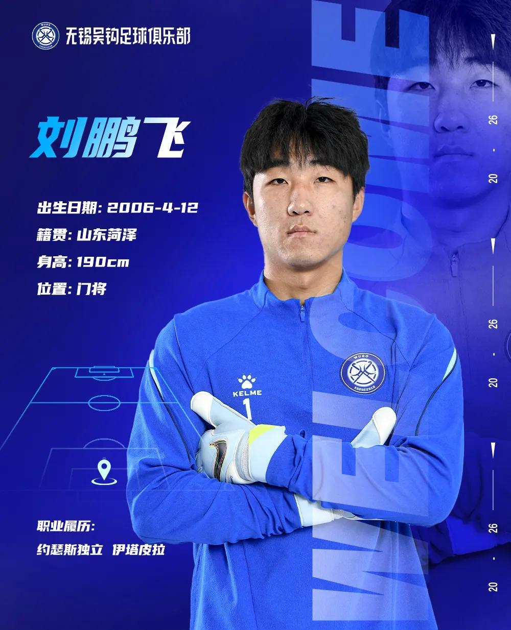 無錫吳鉤官方宣佈,中場李博文、門將劉鵬飛加盟俱樂部。