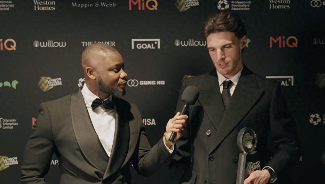 阿森納球員賴斯當選了倫敦足球獎年度最佳球員,頒獎典禮後接受了採訪。