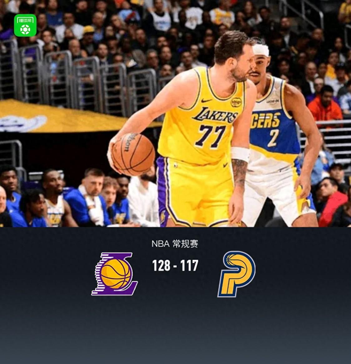 湖人128-117輕取步行者,東契奇三節44+9,詹姆斯缺陣