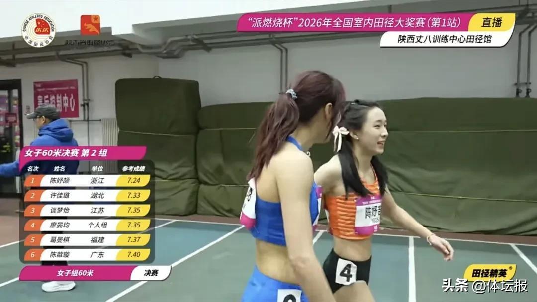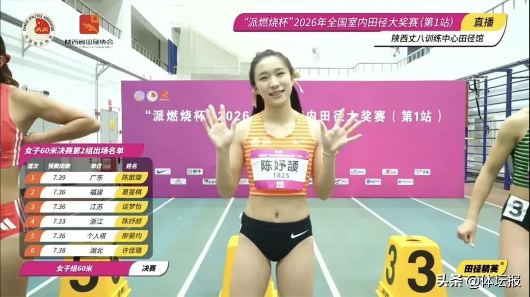 3月7日晚,2026年全國室內田徑大獎賽陝西站(第1站)迎來了一場焦點之戰——女子60米“飛人大戰”。17歲的全運會冠軍陳妤頡在新賽季首秀中,以7秒24的成績強勢奪冠,刷新了由她保持的亞洲少年紀錄。