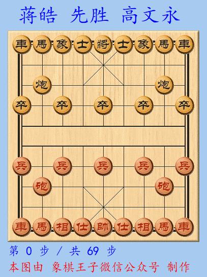 超快棋速度飛快,讀秒聲裏,高文永面對紅方擺中炮的牽制,一步將5平4,成爲大漏,這招如將5平6,老將出另側,勝負還難料,蔣皓1秒出手,車六進四提車砍士一將,69手當即成殺。
