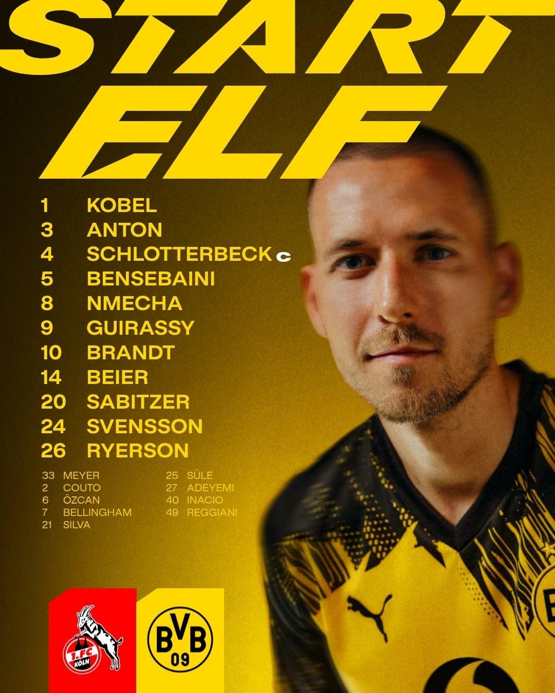 北京時間3月8日1:30,德甲第25輪,多特客戰科隆。賽前首發公佈。