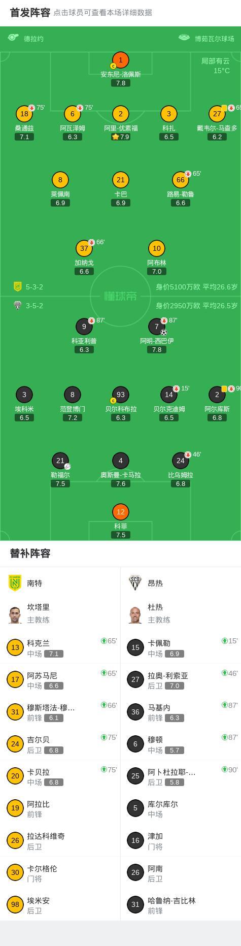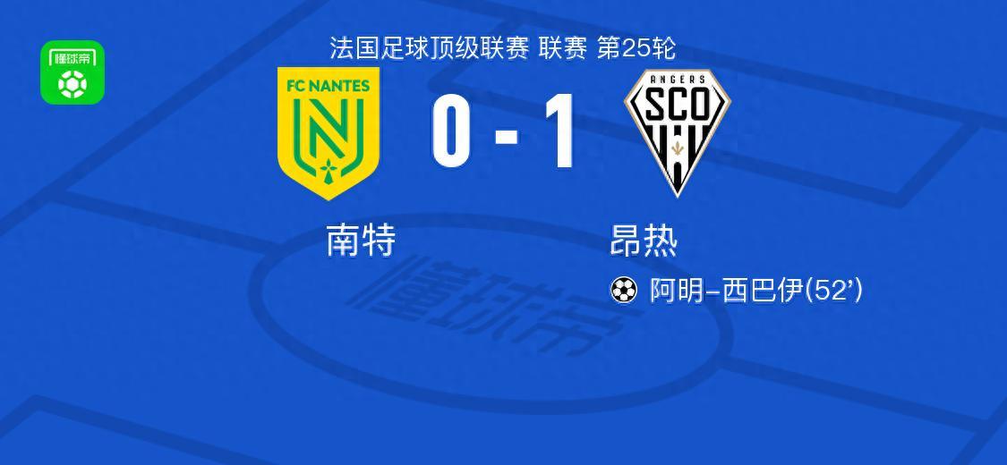 北京時間3月8日法國足球頂級聯賽第25輪,南特主場迎戰昂熱。比賽中,昂熱球員阿明-西巴伊攻入全場唯一進球。最終比分定格爲南特0-1昂熱。精彩瞬間第52分鐘,昂熱球員勒福爾助攻阿明-西巴伊打入一球。球隊陣容 技術統計