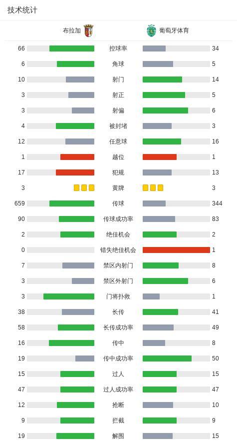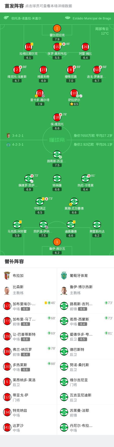 第34分鐘,布拉加球員薩拉薩爾助攻裏卡多-奧爾塔打入一球。