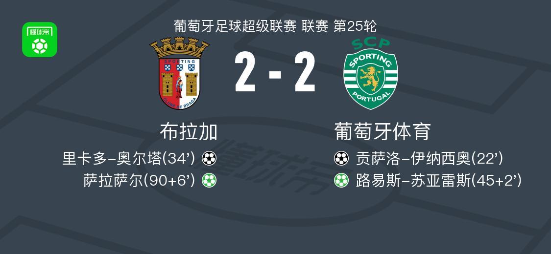 布拉加2-2葡萄牙體育,貢薩洛-伊納西奧首開記錄,薩拉薩爾扳平比分
