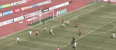 第84分鐘,河野孝汰頭球助攻,松本昌也門前掃射得分,岡山1-0京都