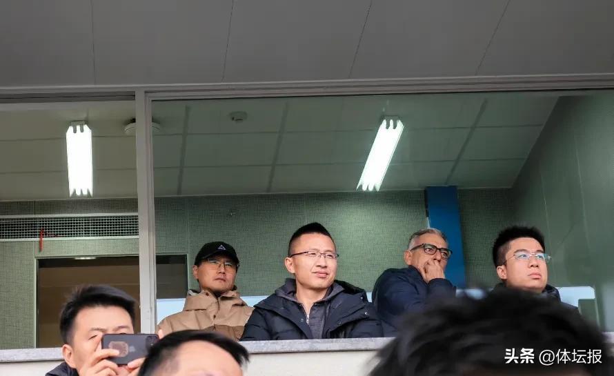 國足新主帥邵佳一(後排左一)現場觀賽