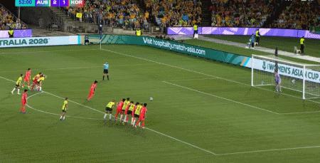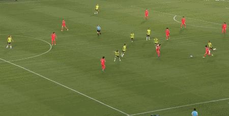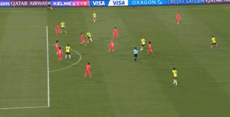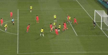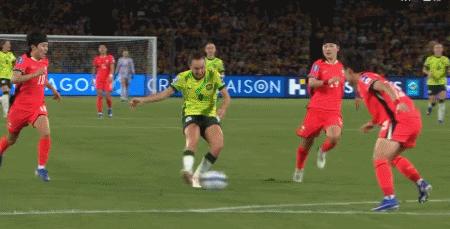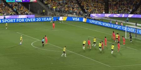 第45+6分鐘,克爾接福爾德傳球低射破門反超比分,澳大利亞2-1韓國