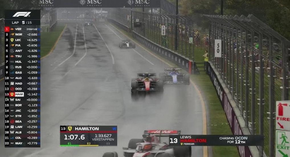 車手後面的+1.145(例),代表的是前車與後車的時間差距,有時還會顯示爲所有賽車與領跑賽車的差距。
