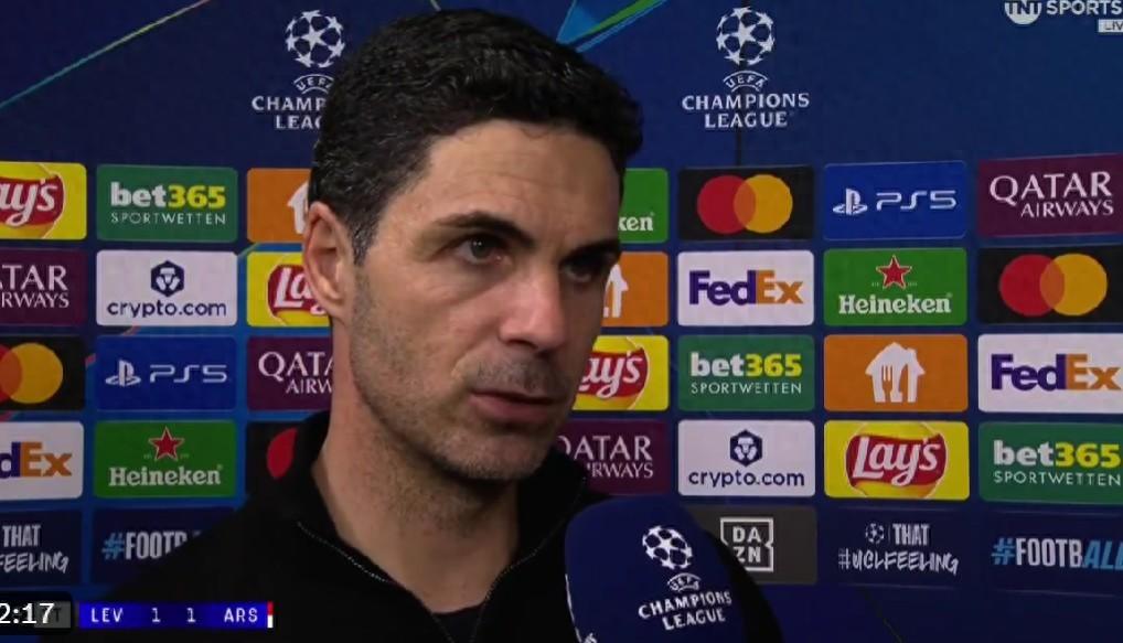 在客場1-1戰平勒沃庫森的賽後,阿森納主帥阿爾特塔接受了TNT體育的採訪。