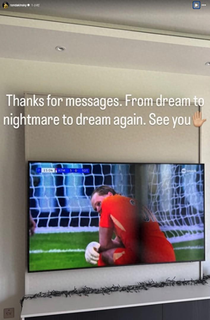 在對陣馬德里競技的歐冠比賽中遭遇噩夢般的17分鐘後,熱刺門將金斯基今日更新社交媒體感謝大家的留言支持。